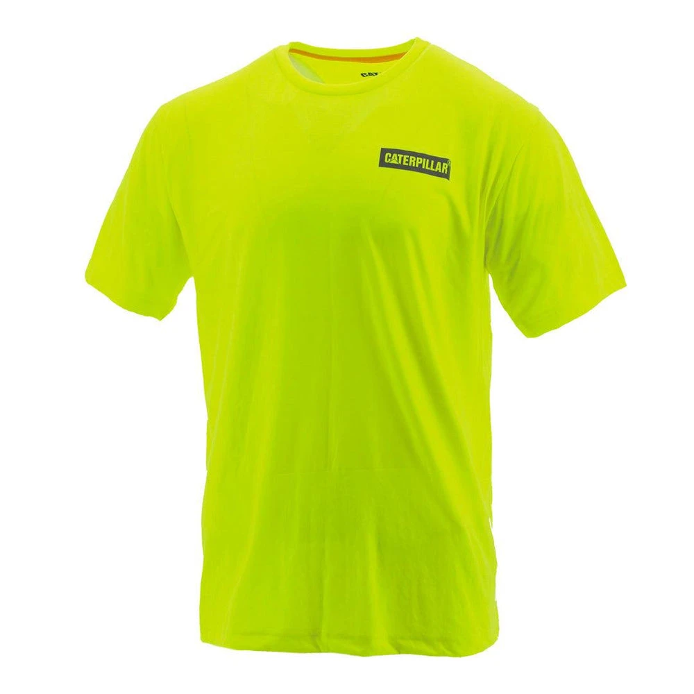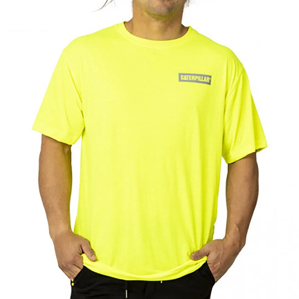 Be seen while keeping cool in the Cat Icon Block Tee in Hi-Vis. Made with moisture wicking materials to keep you dry, this men’s work t-shirt comes with reflective features and a tag-less back neck for comfort.