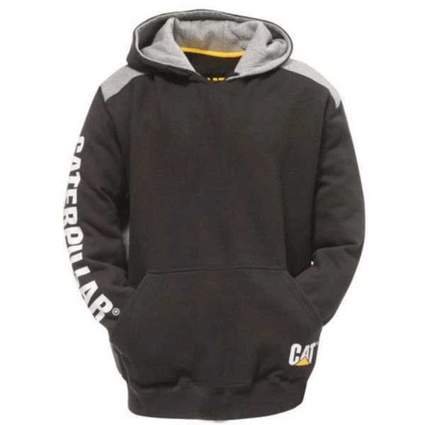 Represent the brand boldly in our CAT Logo Panel Hooded Sweatshirt. Equipped with great features such as the S3 cord management system and a hidden cell phone pocket.