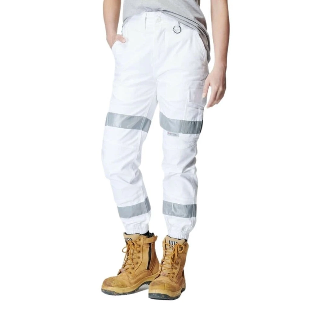 For the first time ever, a womens cuffed reflective pant is in the market! Using the help of 3M Retro Reflective tape in a Biomotion pattern we have created a full accredited ASN/NZS 1906.4-2010 cuffed pant. We have incorporated the tape through our pockets to create maximum movement while still looking good. Coupled with a solid cargo pocket, Smart phone pocket, ruler pocket, double lined pockets and more reinforcements than a damn wall. Ultra comfort with a slim fit.