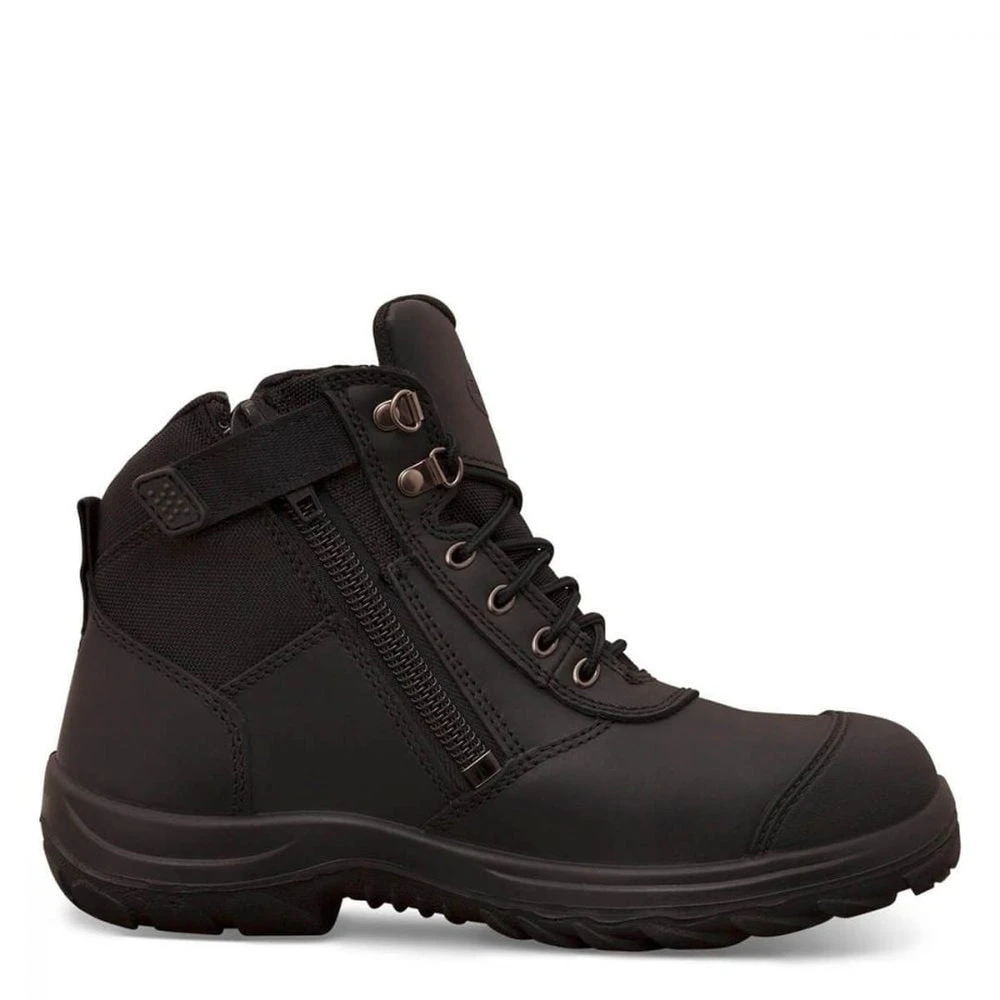 The WB34 series update has raised the bar in durable, lightweight work boot design. Our new hiker style, zip side ankle boot is made from water resistant leather and features the latest in technology and innovation. With the addition of the premium TECtuff® toe bumper, protection and value have never looked so good. So, you might be working hard, but you’ll feel like you’re walking on air. Features include – Water resistant leather Full lining infused with eco-friendly Odorban® Control Technology to absorb odour for optimum freshness and hygiene COMFORTcushion® Impact Absorption System uses a combination of cellular urethane and PORON® Shock absorbing Polyurethane midsole support NATUREform® Type 1 Toe Cap. Wider profile for greater comfort GRIPthane® tread pattern for greater traction and heat resistant to 130°C