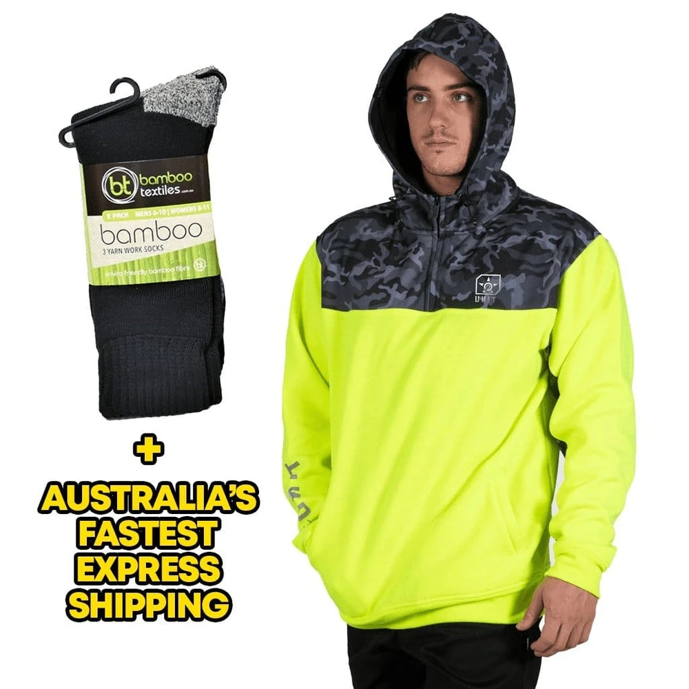 Unit Men’s Traction Fleece Hoodie. Comes with Bamboo Textiles 2PK Socks + Australia’s FASTEST EXPRESS SHIPPING! Just add this item to your cart and add the socks at the pop up window and it will be added once you check out!